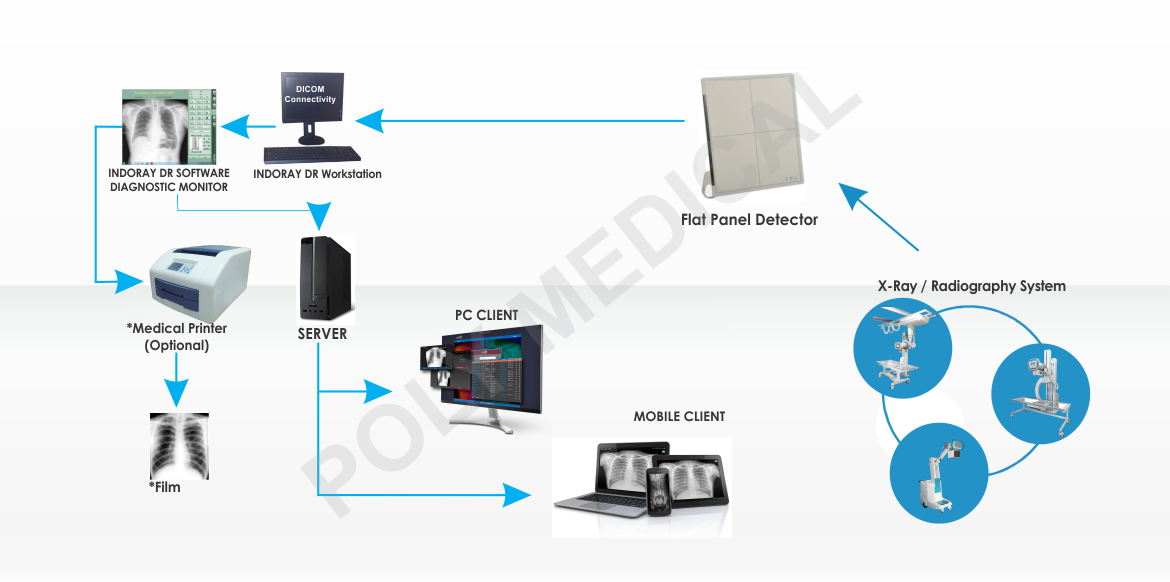INDORAY Digital Radiography System With Teleradiology System & Printer - IR DR(W)TSP