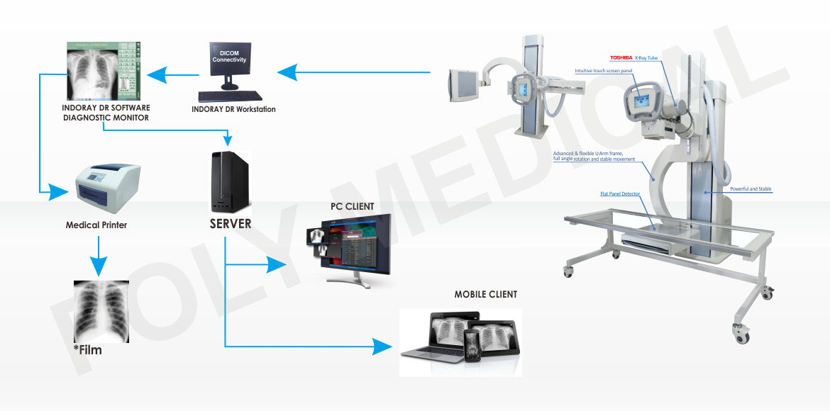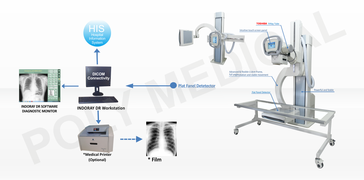 INDORAY U-Arm High Frequency Radiology System + DR With Teleradiology System & Printer - IRU HF + DR (W)TSP