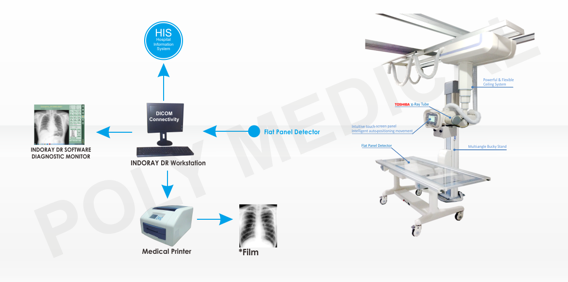 INDORAY Ceiling High Frequency Radiology System + DR With Teleradiology System & Printer - IRC HF + DR(W)TSP
