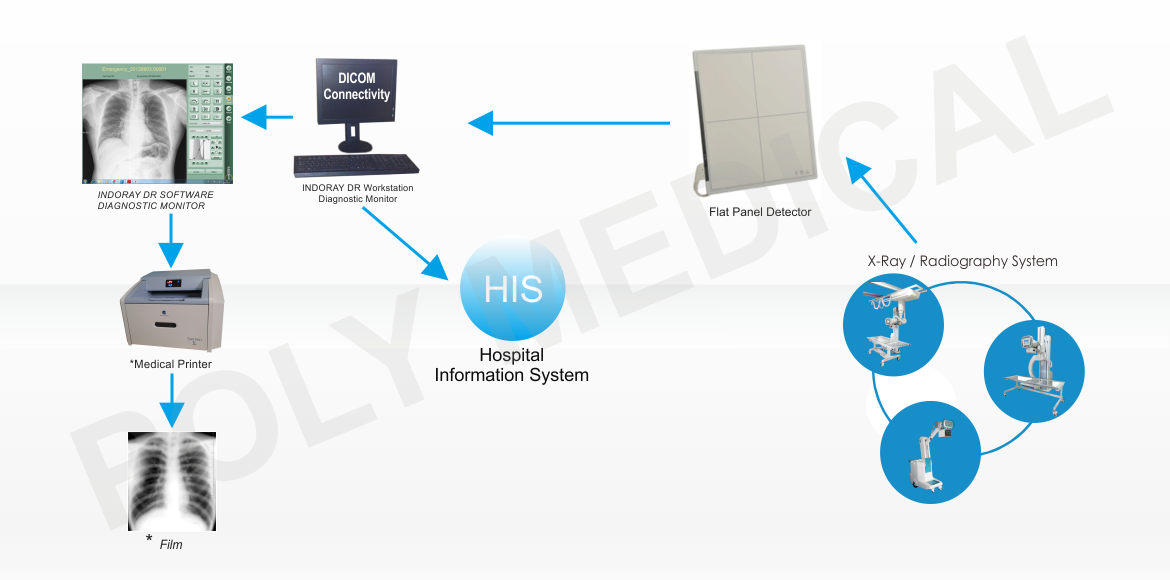 INDORAY Digital Radiography System With Teleradiology System & Printer - IR DR(W)TSP