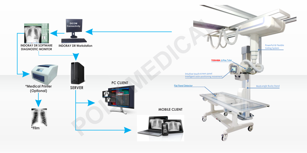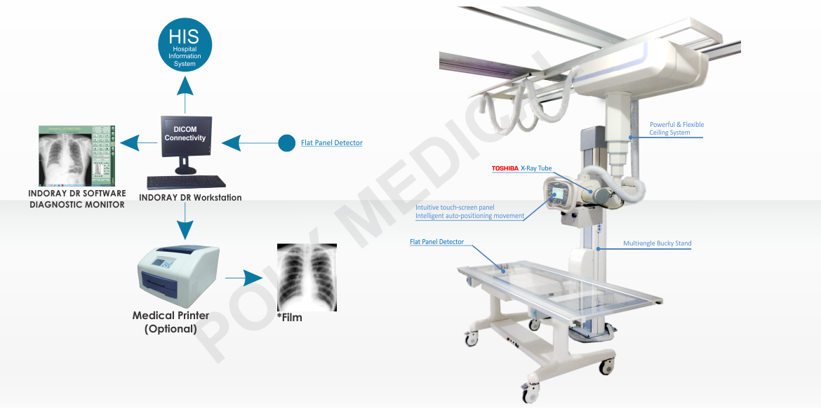 INDORAY Ceiling High Frequency Radiology System + DR With Teleradiology System & Printer - IRC HF + DR(W)TSP